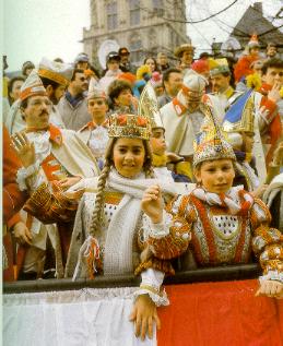 The largest celebration takes place in Cologne, where Fasching is called Karneval. It starts at the 11th second of the 11th minute of the 11th hour of the 11th day of the 11th month. On the last Thursday of Fasching, called Weiberfastnacht, the women are very forward. Parades feature people dressed as clowns. A prince and princess of fools are chosen to lead the festivities and govern on the last day of the celebration.